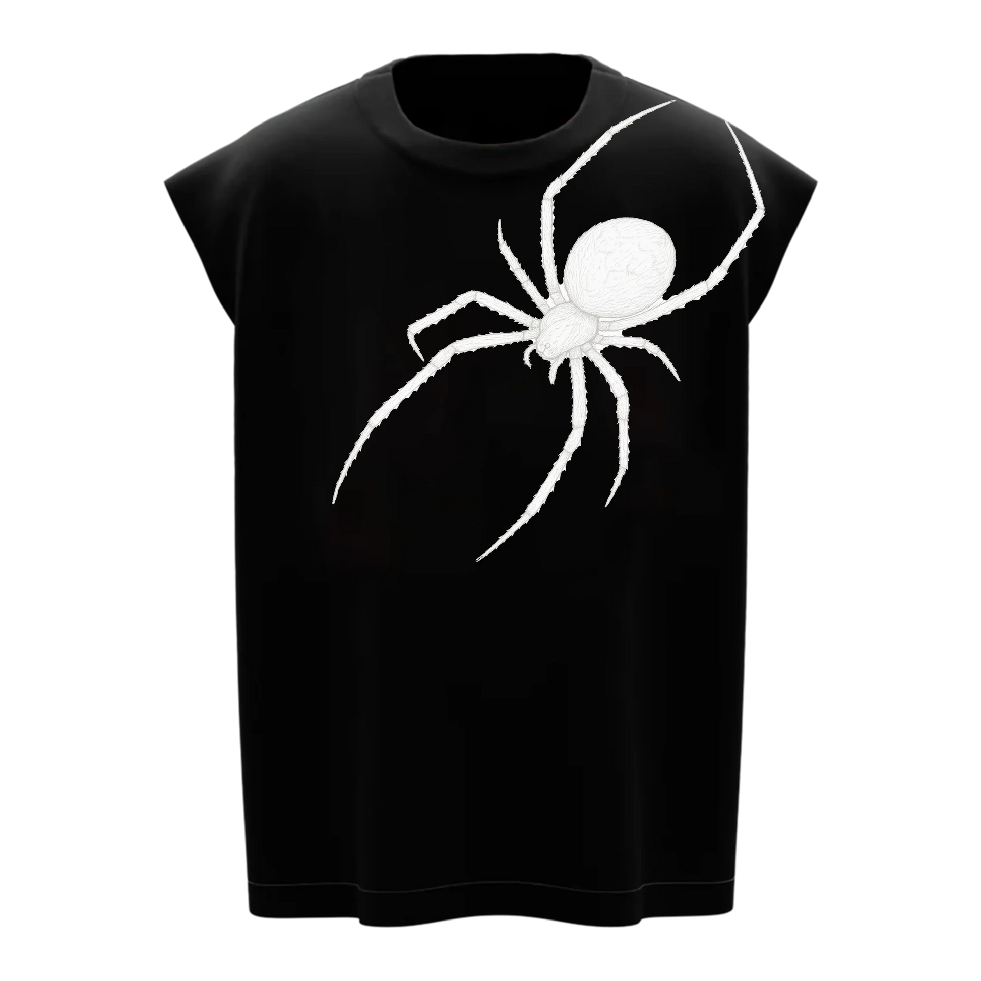 Men's Black Streetwear Gymvest – Oversized White Spider Graphic